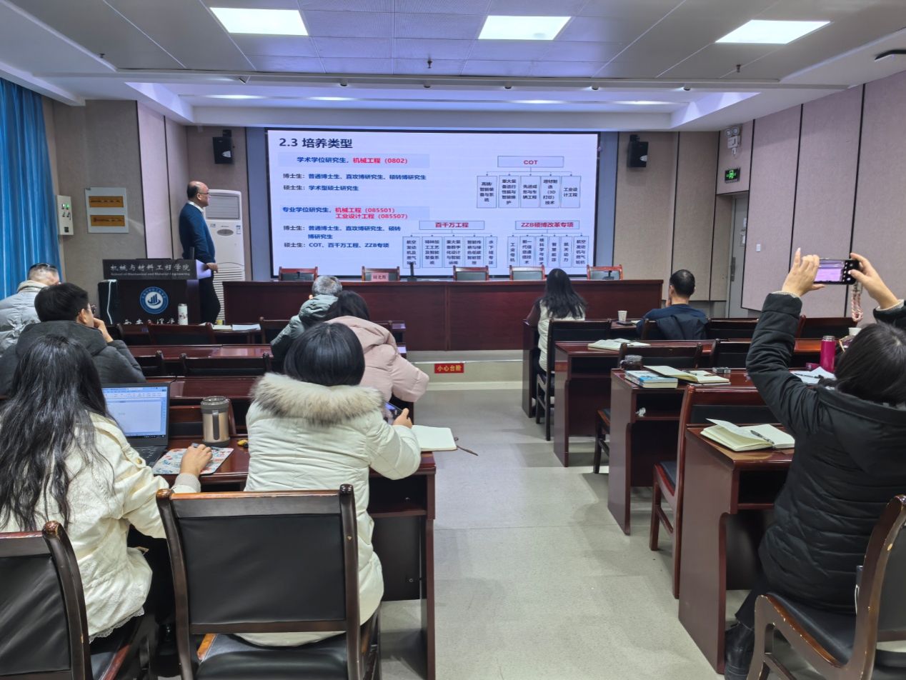 1月16日,机械与材料工程学院组织机械研究生导师、教学和学生管理等人员在实训楼S204开展了关于研究生招生录取、过程培养、教育教学管理、学位论文指导以及实验室建设等全方位的师资队伍培训工作。机械硕士点校内外研究生导师、管理人员30余人参加了此次培训,会议由院长张运良主持。