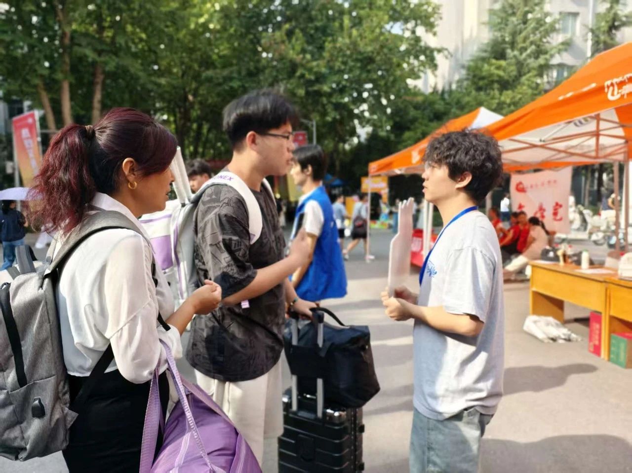学院的志愿者们身着统一服装,忙碌的身影穿梭在校园的各个角落,成为一道亮丽的风景线。从校门口到报到处,从行李搬运到指引答疑,志愿者们用热情周到的服务消除了新生初来乍到的陌生感,让每一位新生都感受到了学院的温暖与关怀。