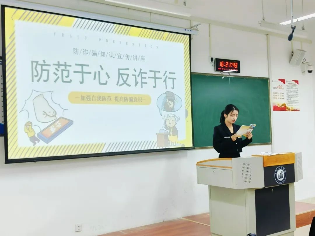 随着互联网技术的不断发展,网络诈骗频频发生,诈骗手段层出不穷。为提高大家的防诈骗意识,保护大家的财产安全,10月11日,机械与材料工程学院专为本学期退役复学学生及24级专升本退役学生开设“捂好钱袋子”防诈骗专项安全教育,学院党总支副书记杜丽娜、征兵专责张佳婧以及28名退役学生参加教育会。