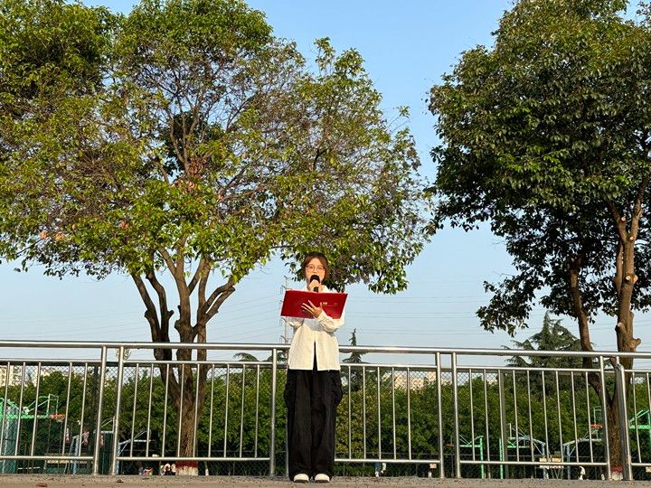 机械与材料工程学院光电信息科学与工程专业2101班吴轶卓作为优秀学生代表,在国旗下作“青春担当”主题演讲。她聚焦爱国主义精神的实质与内涵,呼吁新时代青年要有对自己的担当、社会的担当和国家的担当,要坚定理想信念不断提升自身综合素质能力。号召广大学子要肩负起青春担当的重任,用我们的行动去书写属于我们自己的青春篇章。要勇敢追梦,不畏艰难;要积极担当,不负韶华。以青春之我,创建青春之家庭,青春之国家,青春之民族,让青春在担当中焕发出最耀眼的光芒!