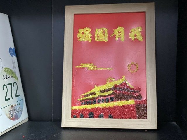 活动伊始,张佳婧介绍了五谷画的相关知识以及五谷作画的制作流程。五谷画是一种传统民间工艺,象征着五谷丰登、国泰民安,并且有着深厚的民族文化内涵。随后,大家用各类植物种子、七彩米、豆子等五谷杂粮,通过粘、贴、压、拼等手段,在纸板上进行创作。支部成员以五谷为笔画,以色彩作创意,献上《盛世中华》《石榴籽团结精神》《强国有我》《我和我的祖国》以及《有理想 有担当 能吃苦 肯奋斗》等精彩画卷,深情地表达对党的感恩之情和对祖国的美好祝愿。